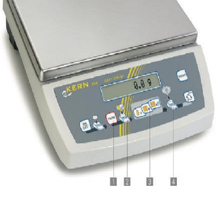 - Cân có 2 chức năng: chuyển đổi từ chế độ đếm mẫu sang chế độ cân chỉ cần một phím nhấn